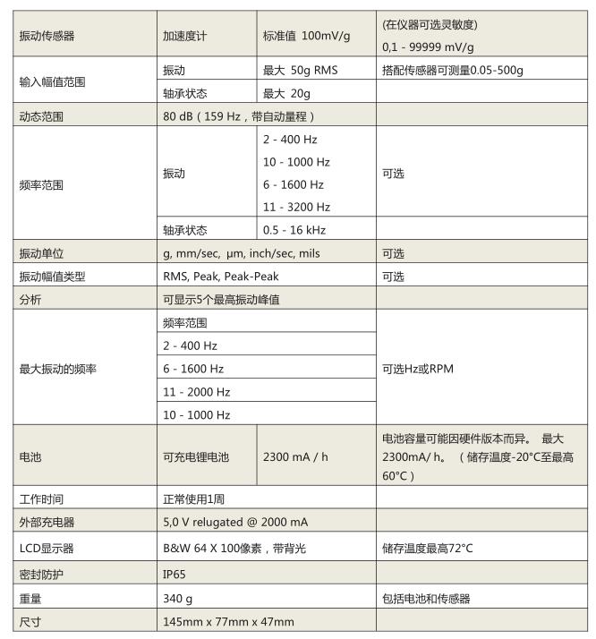 使用者可選測(cè)量單位和幅值類型:?jiǎn)挝唬篻,mm/sec,μm,inch/sec,mils 幅值類型:RMS,Peak 或 P-P