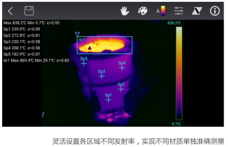 卓越的現(xiàn)場分析功能,低溫自動捕捉,12點12區(qū)3線自定義測溫;靈活分區(qū)域發(fā)射率設(shè)置,專業(yè)測溫參數(shù)修正。