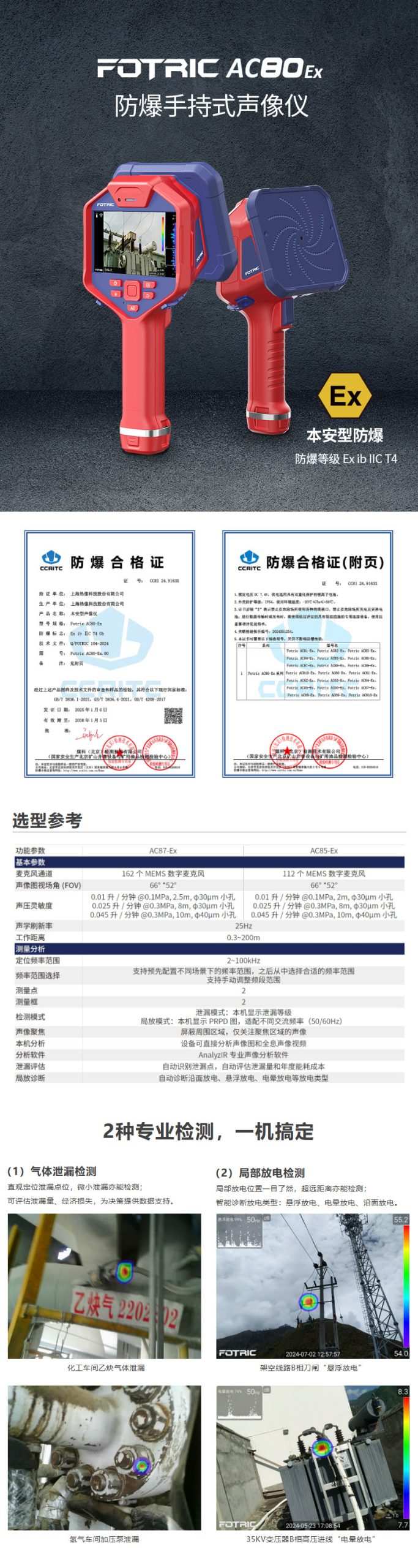 | 檢測模式 | 泄漏模式:本機顯示泄漏等級 局放模式:本機顯示PRPD圖,適配不同交流頻率(50/60Hz)  |
