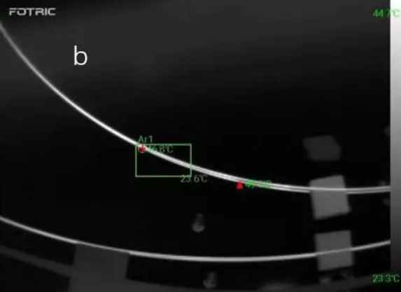 在生產(chǎn)和研發(fā)中都需要關(guān)注焊點與設備的溫度。以 生產(chǎn)為例,一臺功率在1000瓦的設備生產(chǎn)一般要50 小時左右,上面有7~8個焊點,在恒溫25℃的環(huán)境中測試,設備功率從100、200、300逐級增加到1000瓦最大功率。使用熱像儀監(jiān)測所有點的溫度,可以精準測溫,及時知曉溫度值是否在正常范圍內(nèi)。