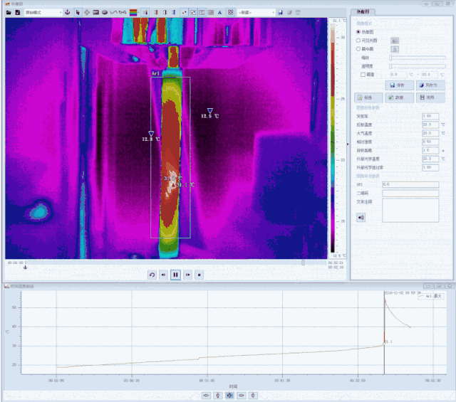 高分子材料成型過(guò)程中,可能會(huì)受溫度、壓強(qiáng)、應(yīng)力及作用時(shí)間等變化的影響。使用FOTRIC 熱像儀觀(guān)察其反應(yīng)溫度,研究不同反應(yīng)溫度下材料的結(jié)構(gòu)與質(zhì)量,確認(rèn)最佳反應(yīng)溫度。