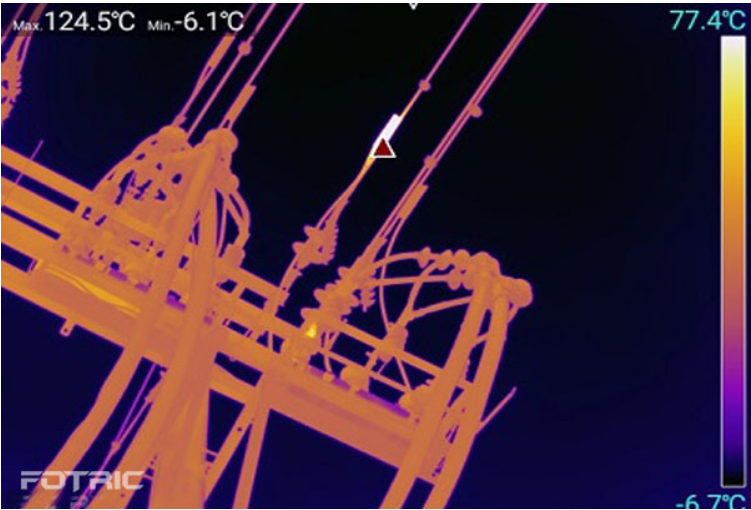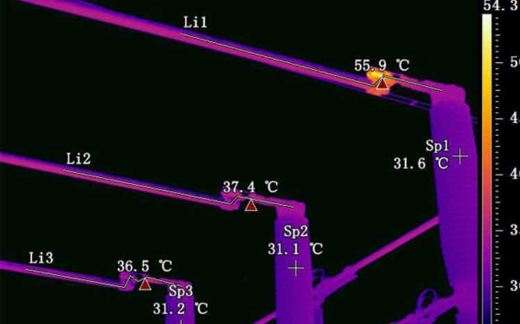 線夾是輸電系統(tǒng)中的重要設(shè)備,由于接觸不良、腐蝕等原因,易出現(xiàn)異常過熱點(diǎn),嚴(yán)重影響安全供電。線夾因測(cè)量距離較遠(yuǎn),采用傳統(tǒng)的監(jiān)控方式往往很難精準(zhǔn)檢測(cè)。使用熱像儀可以準(zhǔn)確測(cè)出過熱點(diǎn),及時(shí)排除隱患,確保供電安全, 保障電網(wǎng)長(zhǎng)期安全穩(wěn)定運(yùn)行。