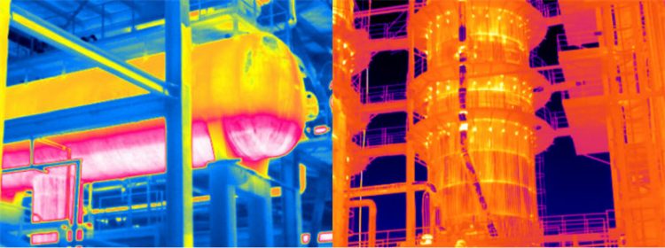 保障安全生產(chǎn) 石油化工行業(yè)的設(shè)備高溫高壓等惡劣工況下,易存在設(shè)備安全隱患。為了及早發(fā)現(xiàn)問(wèn)題,保證安全的生產(chǎn)運(yùn)營(yíng)、延長(zhǎng)設(shè)備的使用壽命,紅外熱像儀是理想選擇。 儲(chǔ)液罐液位檢測(cè) 熱像儀可以利用儲(chǔ)油罐液體與氣體的溫差,直接在外表面拍攝出液位線,幫助設(shè)備維護(hù)人員及時(shí)發(fā)現(xiàn)有故障的液位罐,或?qū)Υ鎯?chǔ)容量有明顯偏差的罐體進(jìn)行深入檢測(cè)。 反應(yīng)器法蘭檢測(cè) 熱像儀可以安全及時(shí)的檢測(cè)…